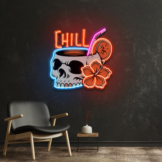 Cocktail Skull LED Neon Sign Light Pop Art