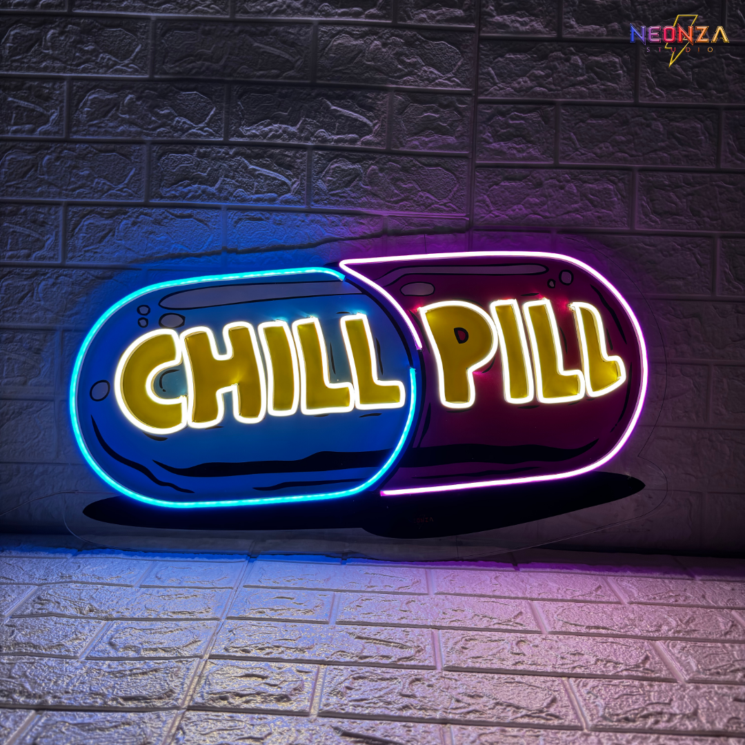 Chill Pill Led Neon Acrylic Artwork can display at home room (living room, bedroom), office, gaming room, event, outdoor home, party,...