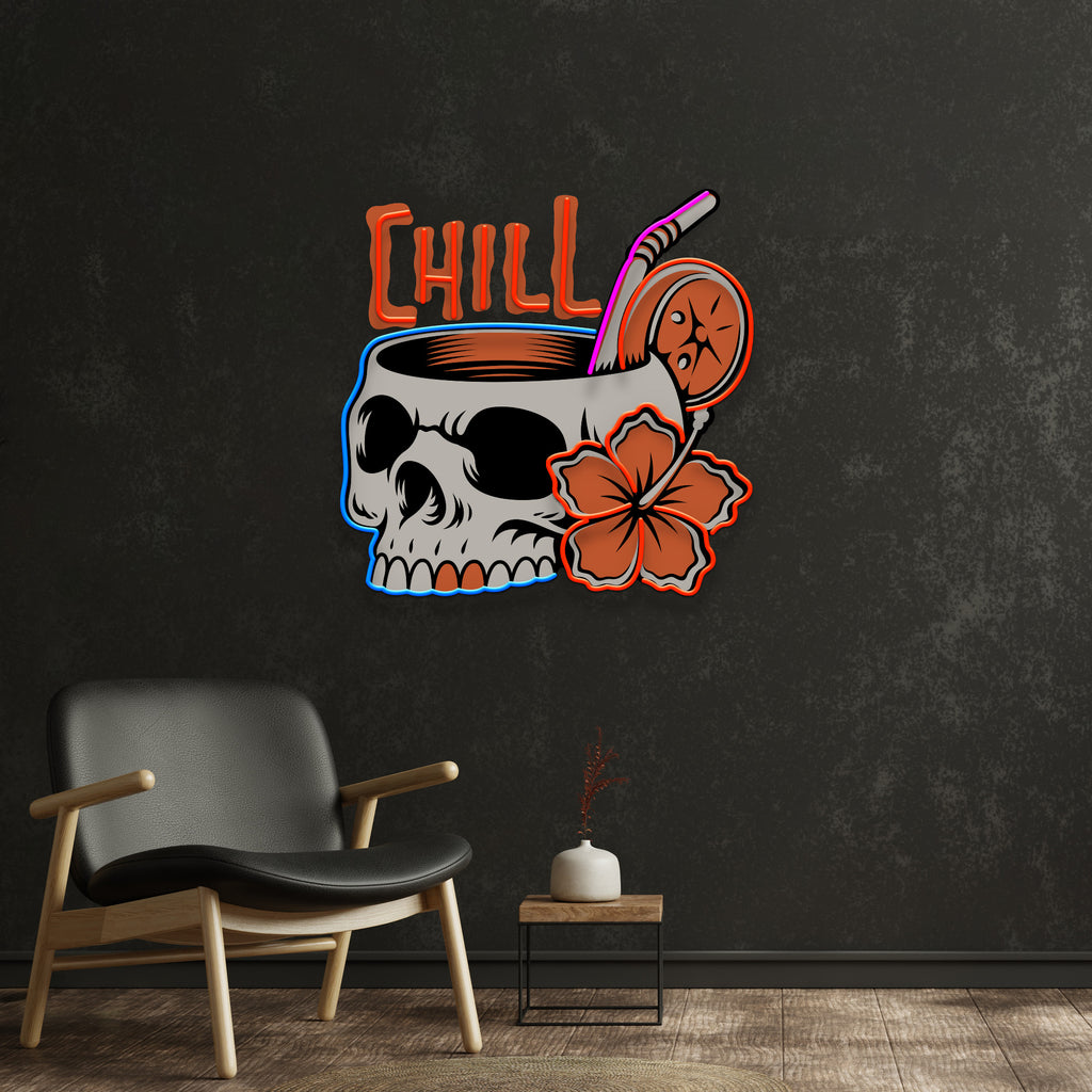Cocktail Skull LED Neon Sign Light Pop Art