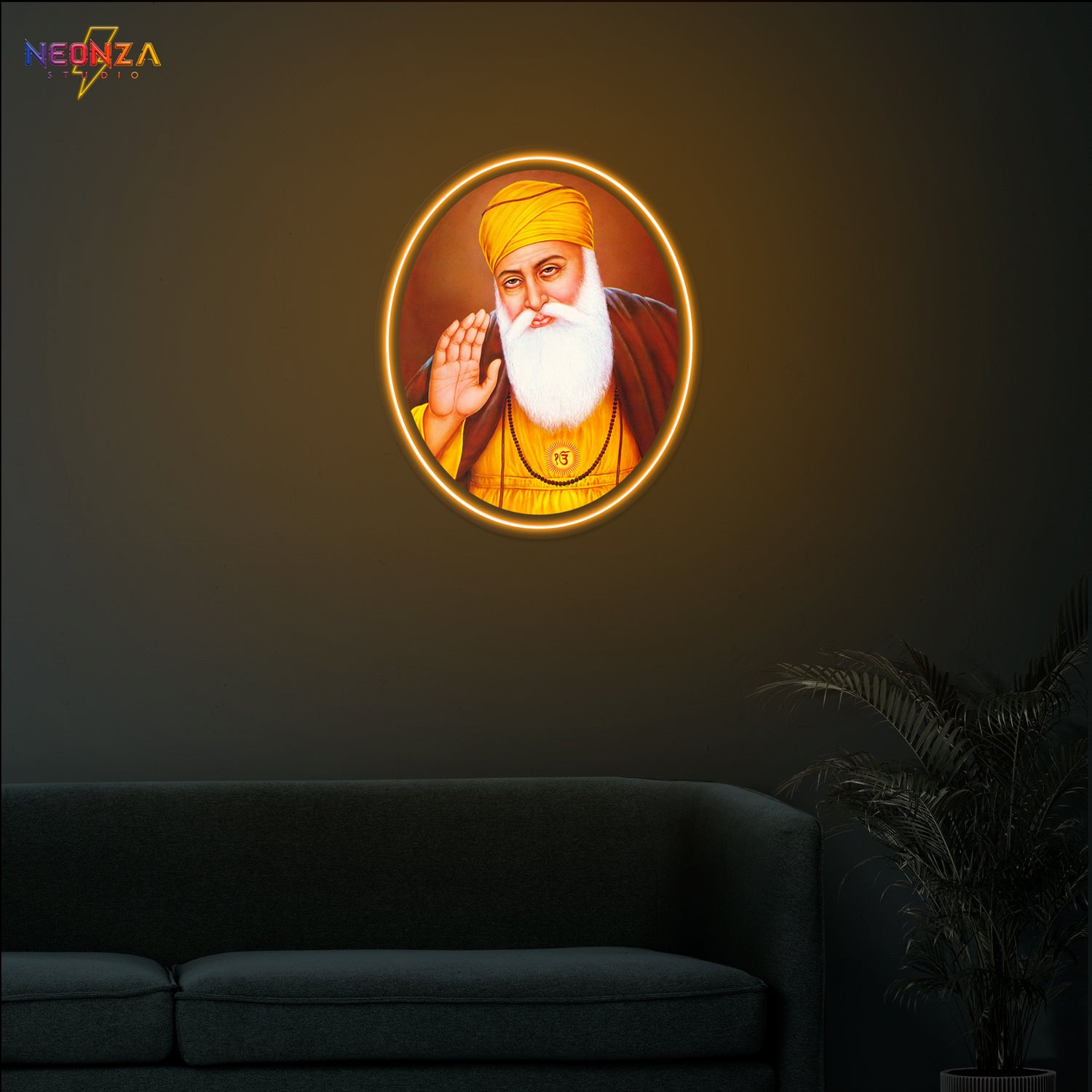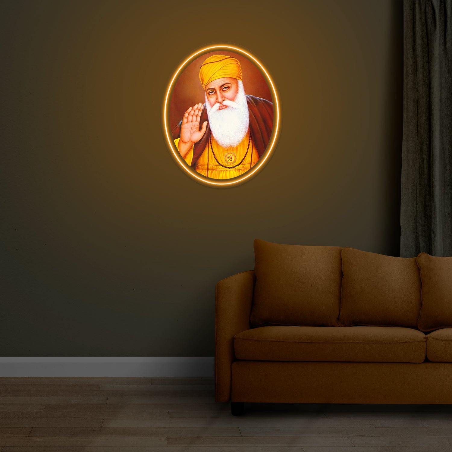 Illuminate your space with the divine presence of Guru Nanak Dev ji. This neon sign artwork radiates elegance and exclusivity, showcasing intricate details and vibrant colors. Each time you look at it, you'll be reminded of his teachings and feel a sense of peace and tranquility. A must-have for any spiritual or art lover's collection.