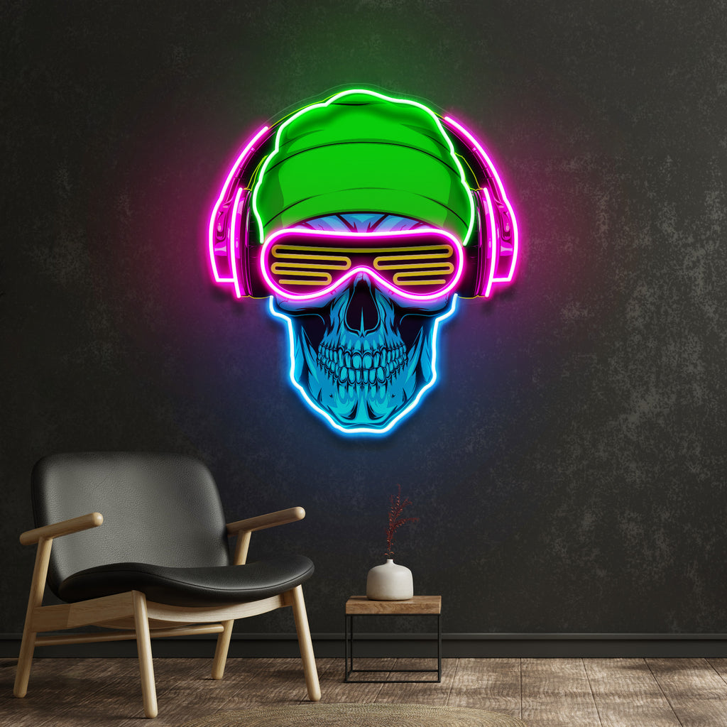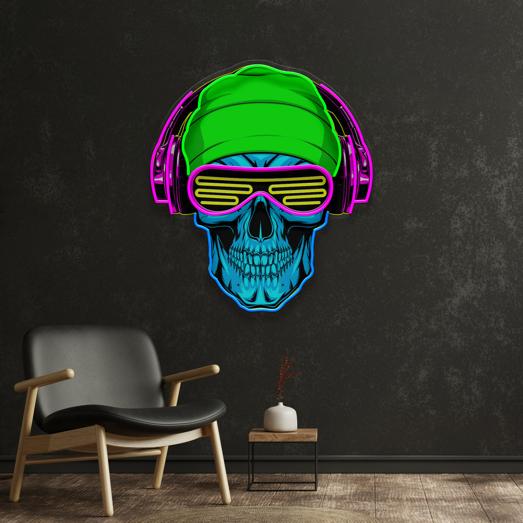 Headphone Skull LED Neon Sign Light Pop Art